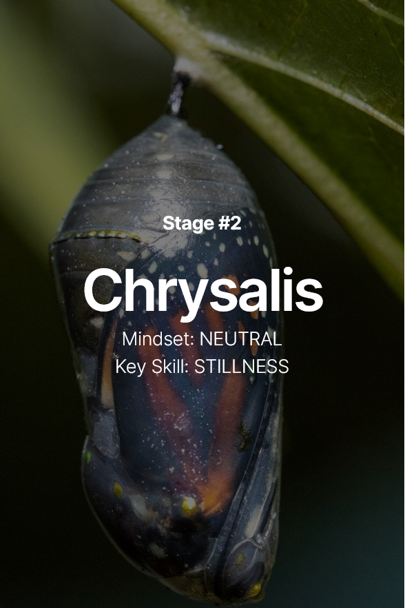 Many issues, such as difficult relationships or feelings of doubt, can be resolved by engaging the situation in a neutral, balanced way. The Chrysalis stage can often become the "new normal" for closing the chapter on a specific issue. But if you decide to, you can move beyond this stage and transform your negative beliefs, emotions or situations into positive ones.